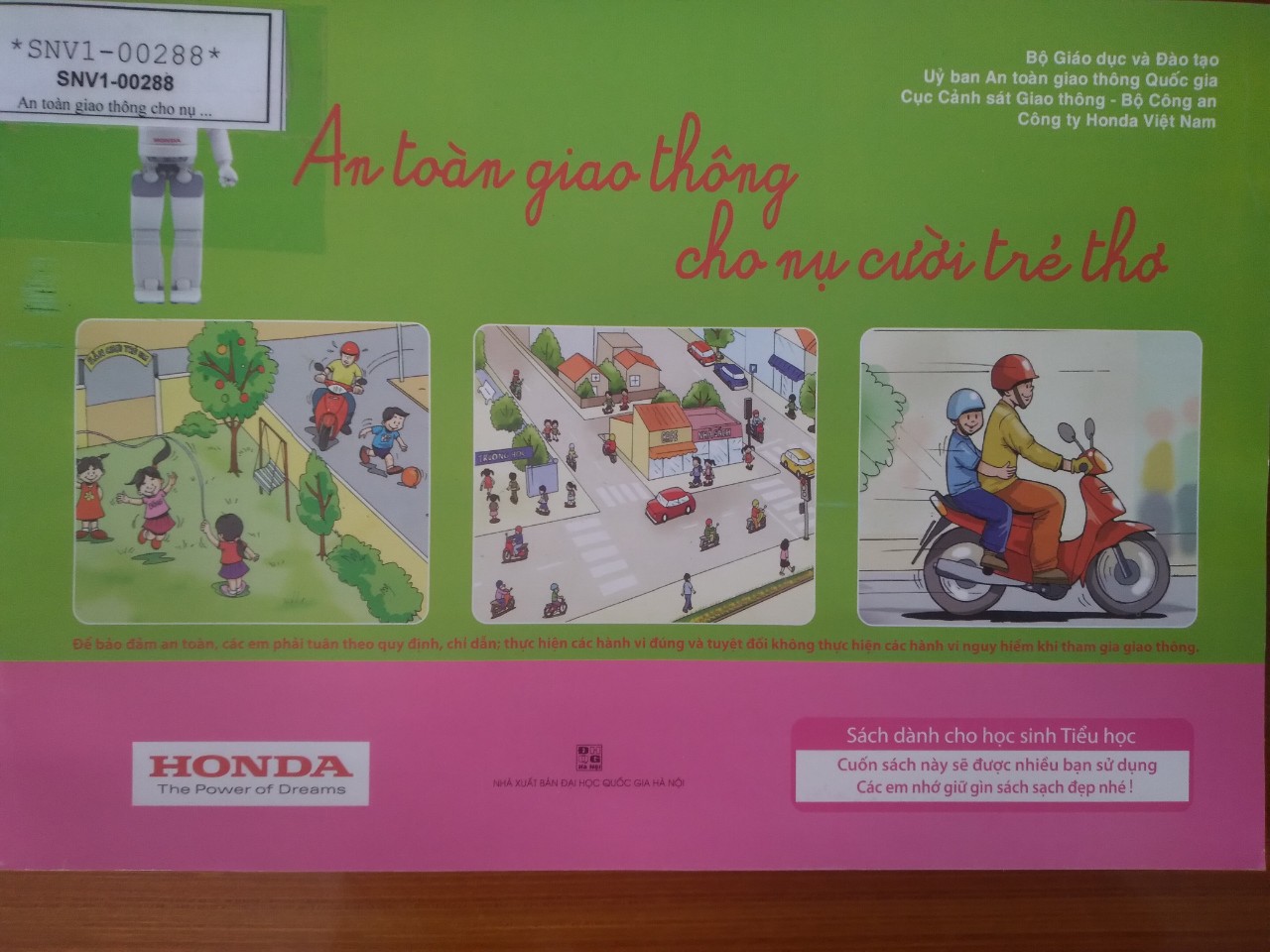 Thông tin thư mục: An toàn giao thông cho nụ cười trẻ thơ/Nhiều tác giả.- H.: Đại học Quốc gia Hà Nội, 2018.- 26tr.:hình vẽ; 25cm.-(Dành cho học sinh tiểu học).
