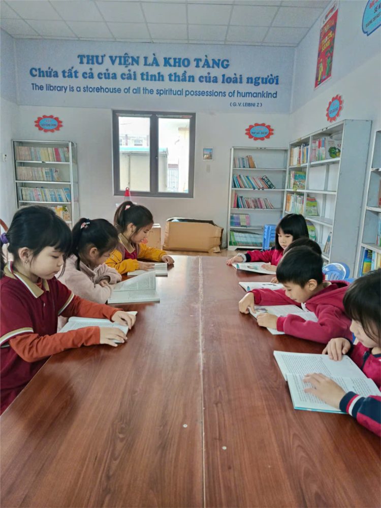 Xác định thư viện không chỉ là nơi lưu trữ sách mà còn là không gian học tập mở, nhà trường đã từng bước đầu tư cơ sở vật chất, bổ sung nguồn sách phong phú, đa dạng về thể loại, phù hợp với lứa tuổi tiểu học. Các góc đọc được bố trí khoa học, thân thiện, tạo cảm giác gần gũi, giúp học sinh hứng thú khi tham gia các hoạt động đọc sách.